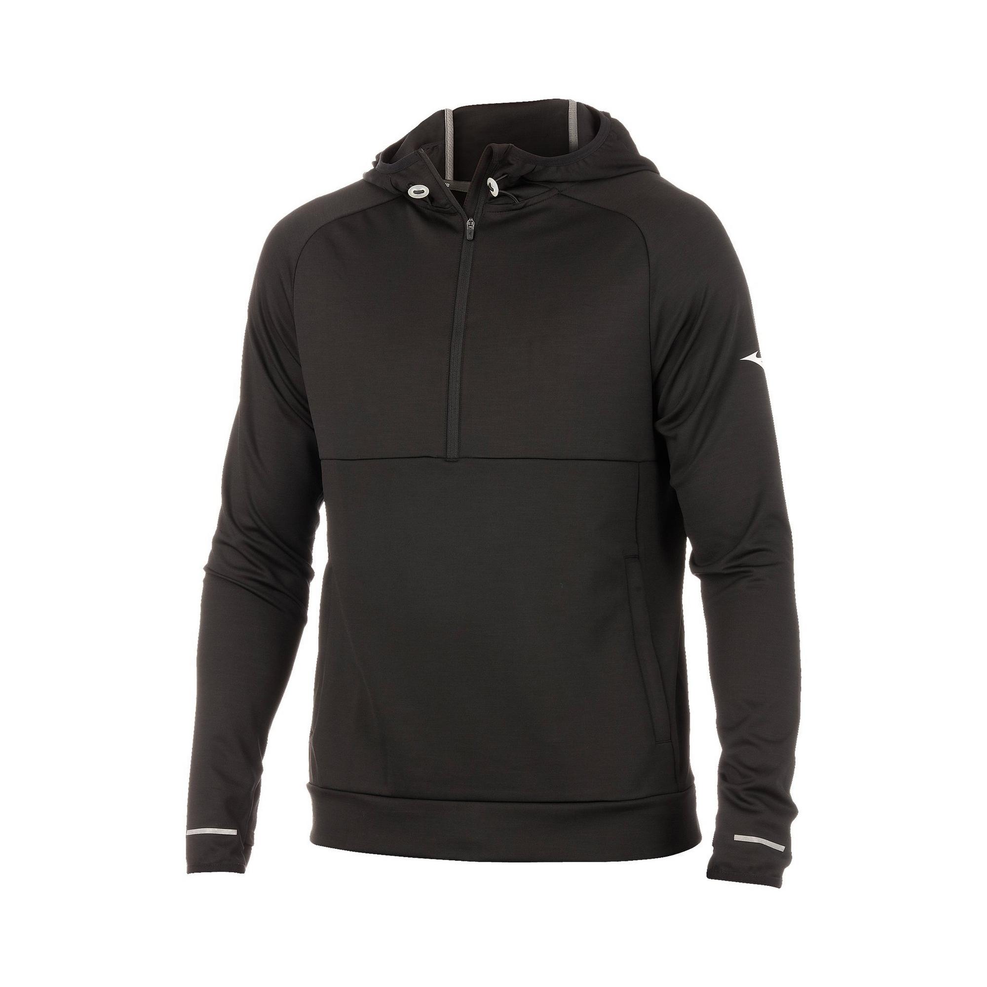 The Men’s MIZUNO INFINITY Running Hoody is lightweight, made from recycled materials and ready to be layered on any time you need it. With 2 zipper pockets, and adjustable hood and convenient thumbholes, it’s your best cool-weather running companion.