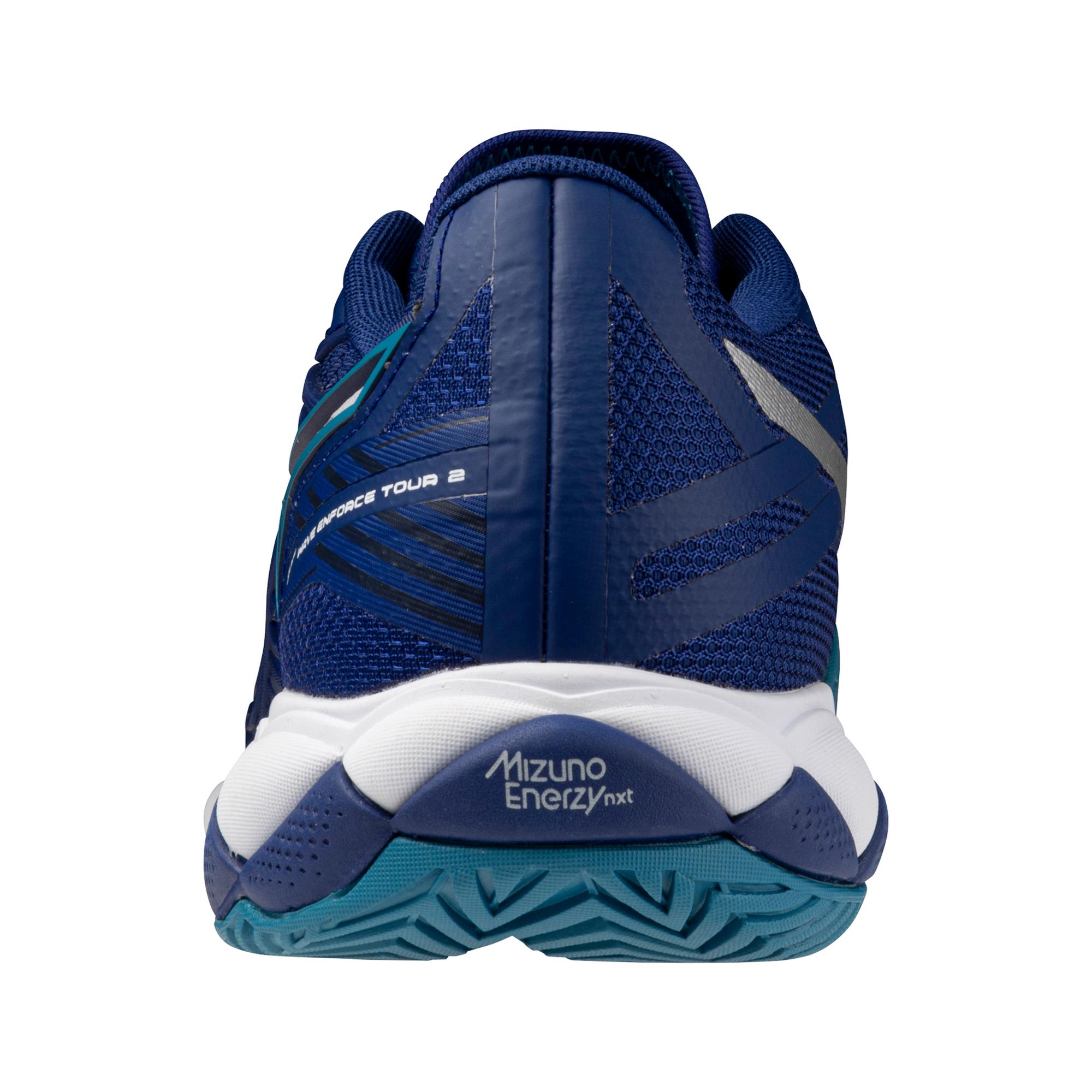 Designed for the advanced tennis or pickleball player, the all-new WAVE ENFORCE TOUR 2 AC is the ideal shoe for powerful competitors looking to enforce their will on their opponents. Equipped with the new MIZUNO ENERZY NXT foam throughout the footbed, the Enforce Tour 2 provides high energy return and plush cushioning for quick transitions without added weight. The DuRubber outrigger outsole supports forceful rotational movement, maximizing stroke power and footwork stability, and works in conjunction with a unique upper blend of CPU and mesh to produce a professional level of durability. The redesigned Dyna-Heel Lock system improves the fit and alignment of the ankle and heel, further enhancing stability and maneuverability. 6-MONTH OUTSOLE WARRANTY.
