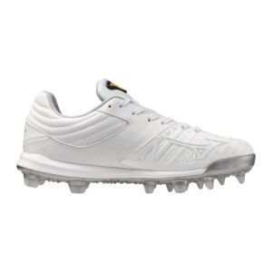 Experience unparalleled protection and performance on the fastpitch field with the Mizuno Pro FP TPU Cleat, a design that redefines standards with 270 degrees of lightweight, flexible casting PU. Balancing maximum durability with feather-light construction, this cleat stands out as the pinnacle of elite athletic footwear. The premium leather heel collar not only adds a touch of luxury but ensures a secure grip on the sock, eliminating slipping during intense gameplay. The C-flex TPU outsole takes center stage, offering an articulated structure for enhanced stability, flexibility, and traction, while simultaneously reducing stud pressure to provide unmatched comfort. Versatile enough for any playing field, the Mizuno Pro FP TPU Cleat is the ultimate choice for the elite fastpitch athlete, delivering superior protection, performance, and comfort in every stride.